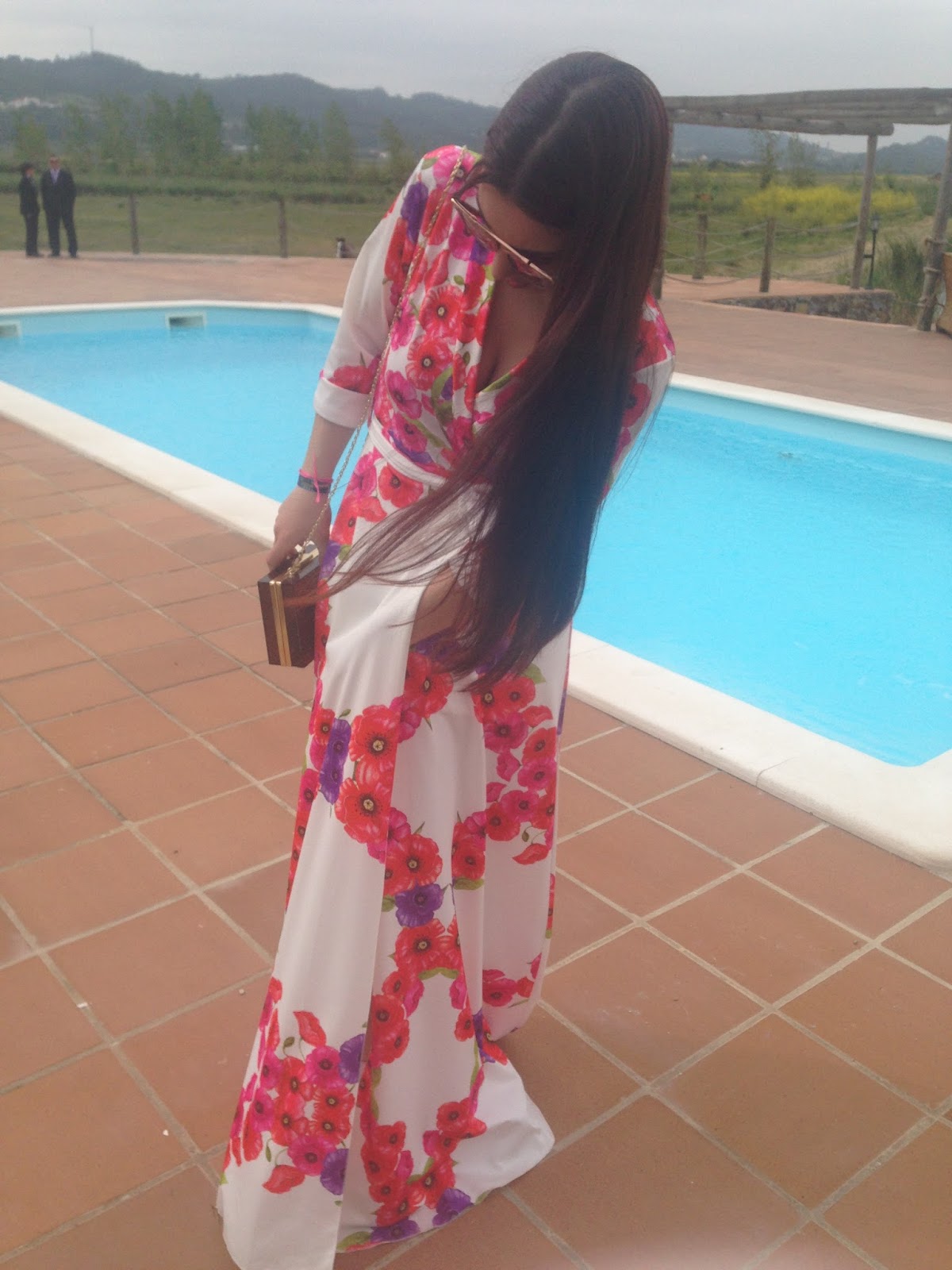 Ele tem as costas abertas e por isso decidi usar um penteado apanhado, visto que o meu cabelo está giganteeeeeee :o